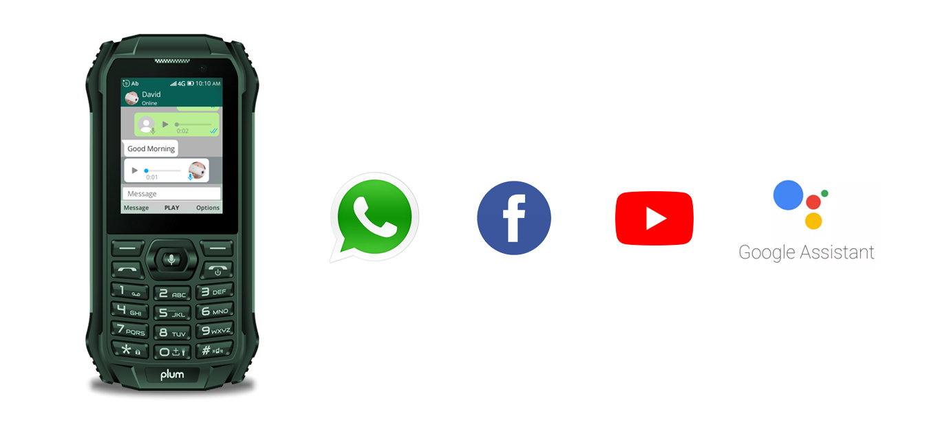 Sistema KaiOS con Whatsapp, Google, Facebook, YouTube.